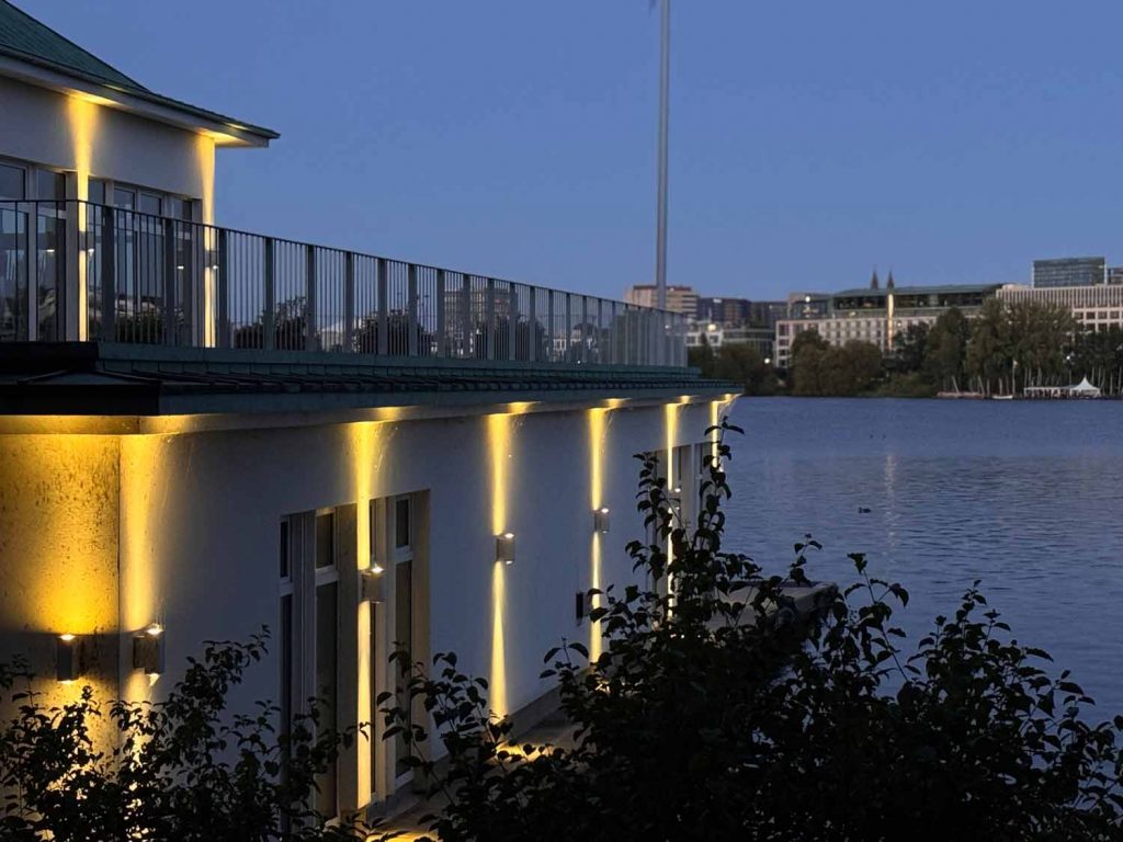 Der Club liegt direkt am Ufer der Außenalster – einem beliebten Ort für Sport, Erholung und Spaziergänge im Grünen. Die Umgebung verbindet hanseatische Eleganz mit entspanntem Freizeitgefühl.